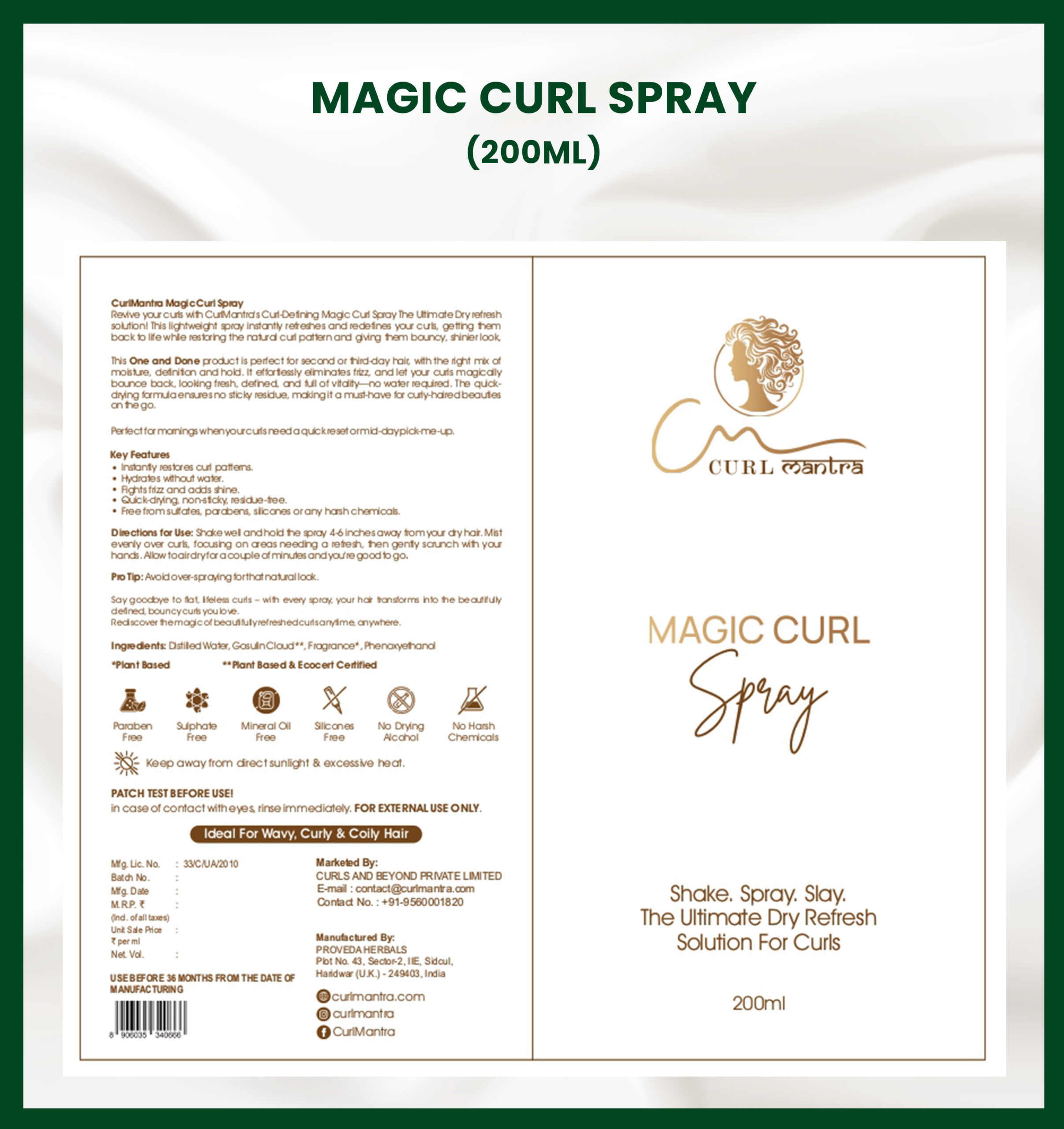 Revive your curls with CurlMantra’s Curl-Defining Magic Curl Spray – The Ultimate Dry refresh solution! This lightweight spray instantly refreshes and redefines your curls, getting them back to life while restoring the natural curl pattern and giving them bouncy, shinier look, with just a few spritzes.